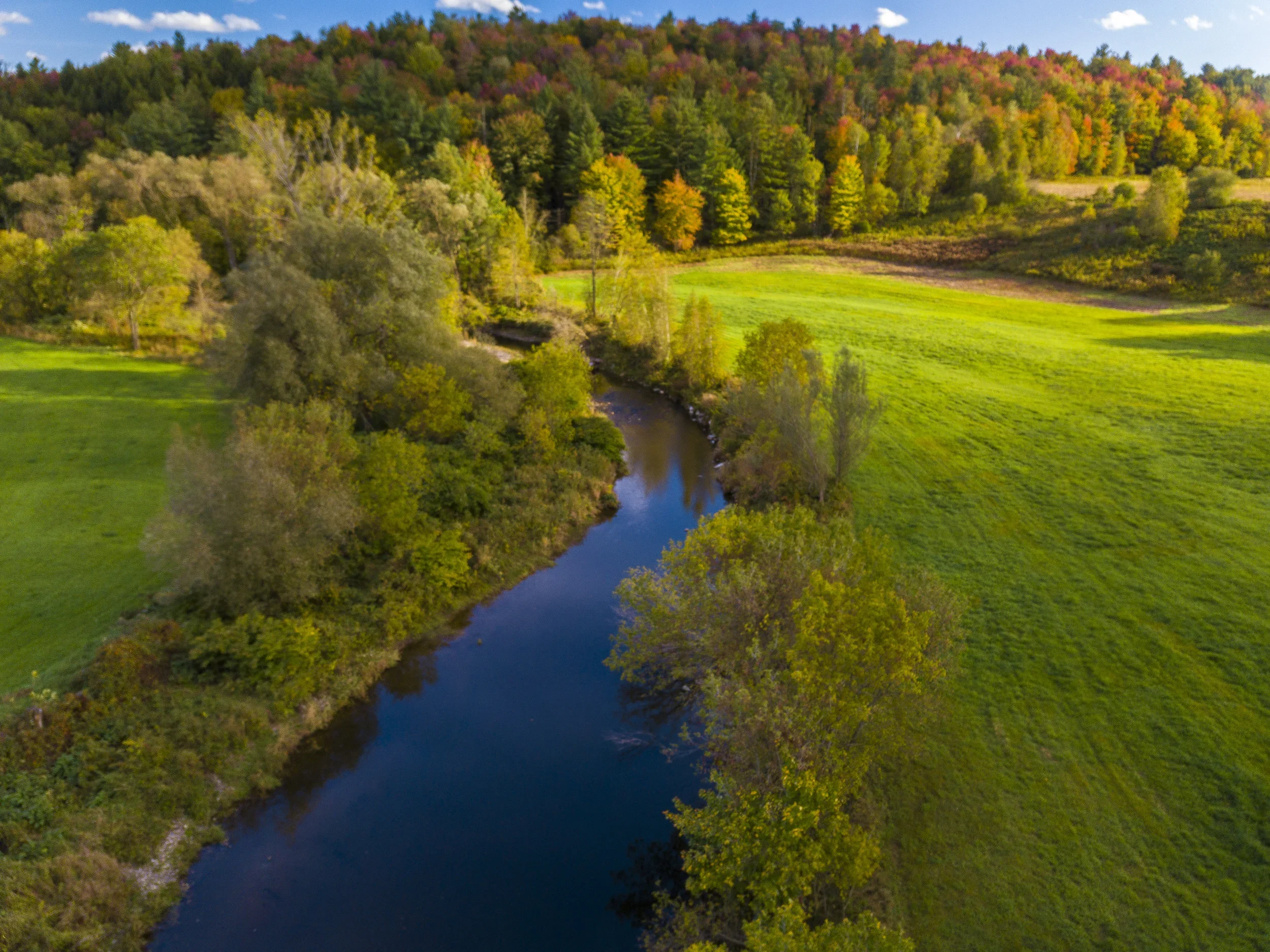 Here, the landscape is not a backdrop — it’s a living part of the story. The fields roll gently toward Mount Mansfield. Tyler Branch winds along the northeast edge of the property, gathering into waterfalls after a good rain. Wildlife moves through the open pastures at dawn, and at night, thousands of stars settle over the farmhouse and barn like a soft blanket.